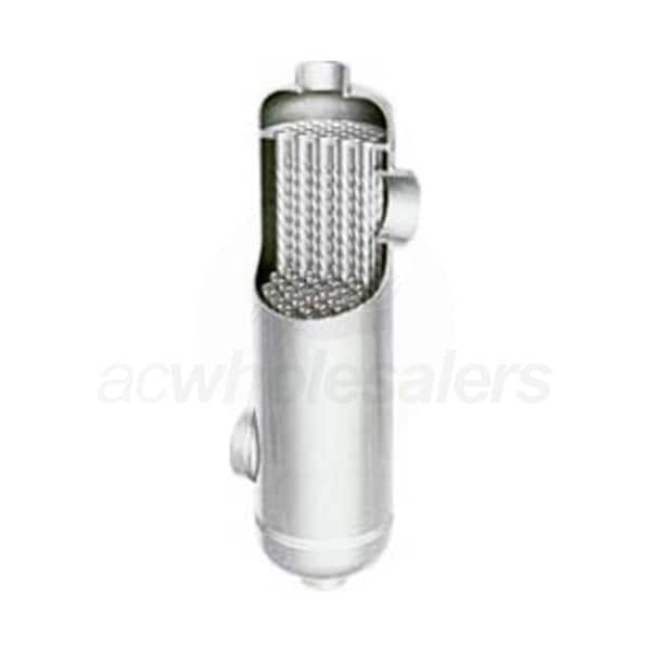 AIC B-70 Shell and Tube Heat Exchanger is designed for a variety of residential applications including in-floor heating, swimming pools, spas, hot tubs, driveway snowmelts. Industrial applications include oil coolers, transmission and engine coolers, boiler sample coolers, and waste water heat recovery. B-line shell and tube exchangers perform at high velocities with low pressure drops. The B-70 is not designed for use in salt water applications.