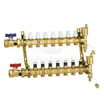 The Caleffi TwistFlow Pre-assembled Manifold Assembly is designed to optimally distribute the heating fluid in floor heating system circuits and ultimately improve the control of heat emission from the panels. The manifold ensures that the flow to each circuit is regulated precisely and also control the shut-off, venting and automatic removal of air from the system. The Caleffi TwistFlow Pre-assembled Manifold Assembly has a CV of 1.23 and 3 outlets.