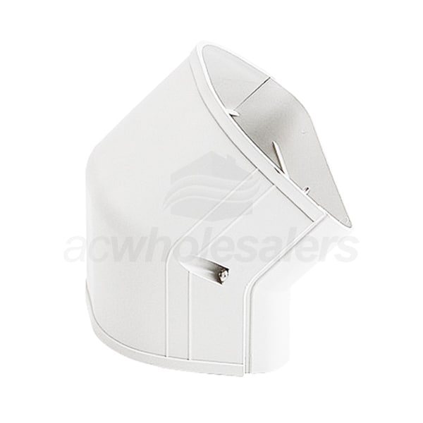 The LCFO92W 45 degree Verticalical elbow is a component of the Fortress® line set cover system. This piece is used to direct your line set around the outside of a corner or obstruction. The 3-1/2" tube conceals and protects your line sets, cables, and draintubing.