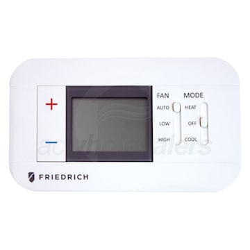 The Friedrich RT7 thermostat is for single stage cool, single stage heat systems but is configurable to 2 stage heat pump systems. It is for use with PDE models as a single stage cool, but can also be used as a dual stage heat for PDH models. The thermostat features high/low fan speed switch. The thermostat is hard wired and can be battery powered or unit powered. For use on PD-series Friedrich PTACs and Vert-I-Paks.