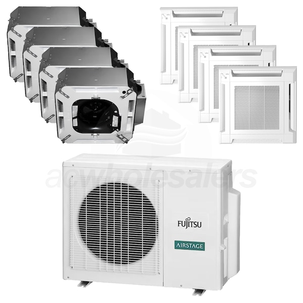 Fujitsu has been providing efficient and responsible heating and air conditioning solutions for decades. Their experience and dedication can be seen in the F4H36C07090909 ceiling cassette mini split system. If you are looking to provide heating and cooling for multiple zones, or supplement existing heating and air conditioning equipment, the Halcyon HFI mini split system is a reliable and efficient choice. The compact ceiling cassette unit mounts easily in your ceiling, allowing you to install the unit at the center of your zone for ideal airflow coverage. With a wide range of operating modes, this system can be customized to suit any of your comfort needs.