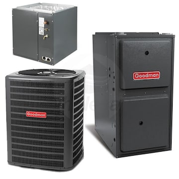 Goodman - 3.0 Ton Cooling - 60k BTU/Hr Heating - Air Conditioner + 2-Stage Furnace Kit - 13.5 SEER - 96% AFUE - For Upflow Installation