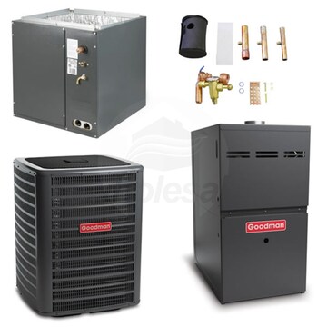 A Goodman high efficiency central air and furnace kit is the perfect way to update your home's HVAC system. This kit contains a GSXC18 air conditioner, a GMVC80805CX furnace, and a cased evaporator coil. With a SEER rating of 18 and a two-stage compressor, it is more efficient and consistent than a single stage counterpart. Each of these components is designed with a focus on ease-of-installation and durability to provide you with upfront and long-term value. If you're looking for a complete comfort solution backed by superior craftsmanship, the Goodman GSXC1824GMVC8080U air conditioner and furnace kit fits the bill perfectly.