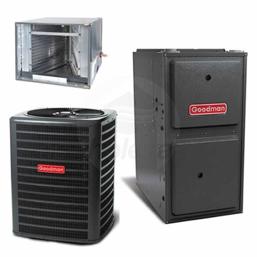 A Goodman high efficiency heat pump and furnace package is the perfect way to upgrade your home's HVAC system. This kit contains a GSZ heat pump with an advanced coil design to maximize efficiency. The heat pump is paired with a two stage GMEC furnace equipped with an ECM multi-speed motor. This pair was specifically chosen to provide high efficiency comfort, year round. A cased coil is included, making this kit an affordable, efficient, whole home solution.