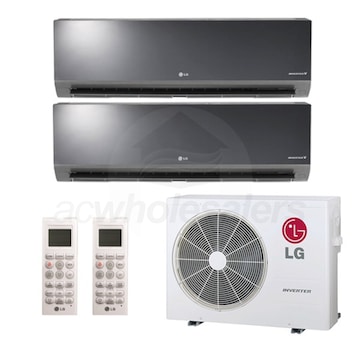 LG Art Cool Mirror Wall Mounted 2-Zone System - 18,000 BTU Outdoor - 9k + 9k Indoor - 22.5 SEER2