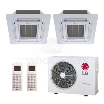 LG Ceiling Cassette 2-Zone System - 18,000 BTU Outdoor - 7k + 9k Indoor - 22.5 SEER2