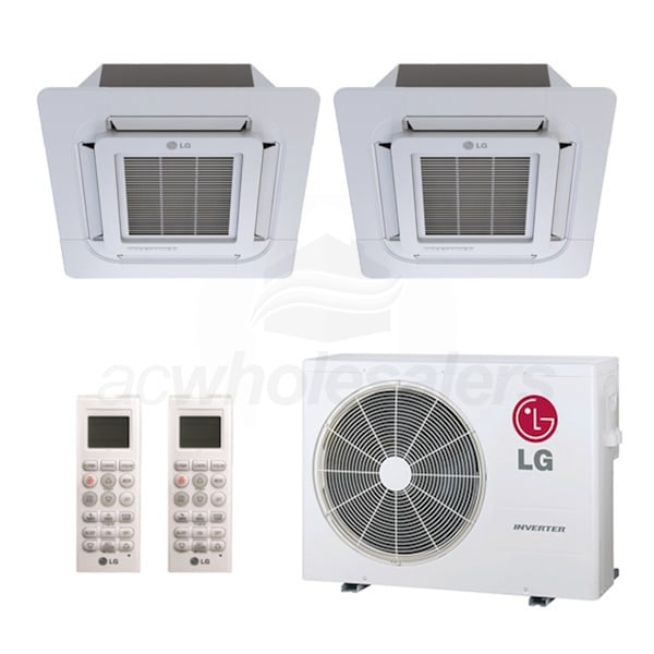 LG Ceiling Cassette 2-Zone System - 18,000 BTU Outdoor - 9k + 9k Indoor - 22.5 SEER2