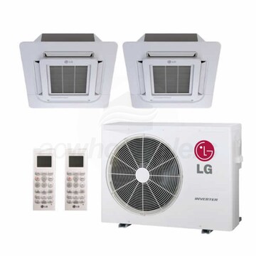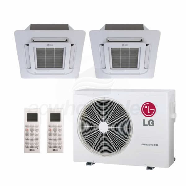 LG Ceiling Cassette 2-Zone System - 24,000 BTU Outdoor - 9k + 12k Indoor - 22.5 SEER2