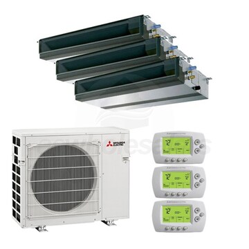 For over 50 years, Mitsubishi has remained at the forefront of the mini split industry thanks to their dedication to providing efficient, user-friendly comfort solutions. This is a three zone mini split system designed to give you individual control over the temperature in multiple rooms. An efficient MXZ-3C24NA3 outdoor condenser, built with advanced technology, is combined with unobtrusive concealed duct SEZ-KD indoor units and three wireless remote controllers for the perfect marriage of convenience and comfort. With multiple operating modes and multiple fan speeds, this is a system that fits the needs of nearly any home.