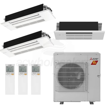 Mitsubishi's dedication to new technology means that multi-zone mini split systems are now a year-round comfort solution for homes in freezing climates. This low ambient system uses a Hyper-Heating H2i MXZ-3C24NAHZ3 outdoor condenser to provide efficient cooling and subzero heating through three advanced MLZ ceiling cassette indoor units. Three wireless remote controllers guarantee convenient comfort by allowing you to control the temperature in individual rooms. An MXZ multi-room system is an excellent choice for supplementing capacity to a current system, conditioning newly furnished spaces, or new additions and replacing a system within a home. With multiple operating modes and multiple fan speeds, this is a system that fits the needs of nearly any home.