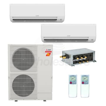 For over 50 years, Mitsubishi has remained at the forefront of the mini split industry thanks to their dedication to providing efficient, user-friendly comfort solutions. This is a two zone mini split system designed to give you individual control over the temperature in multiple rooms. An efficient MXZ-SM36NAMHZ2 outdoor condenser, built with advanced technology, is combined with quiet, wall mounted MSZ-GS indoor units and two wireless remote controllers for the perfect marriage of convenience and comfort. With multiple operating modes, multiple fan speeds, and multiple airflow directions, this is a system that fits the needs of nearly any home.