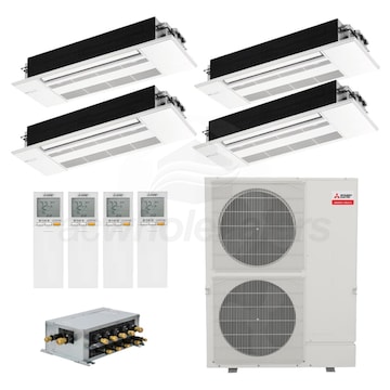 For over 50 years, Mitsubishi has remained at the forefront of the mini split industry thanks to their dedication to providing efficient, user-friendly comfort solutions. This is a four zone mini split system designed to give you individual control over the temperature in multiple rooms. An efficient MXZ-SM48NAM2 outdoor condenser, built with advanced technology, is combined with quiet ceiling cassette MLZ-KP indoor units and four wireless remote controllers for the perfect marriage of convenience and comfort. An MXZ multi-room system is an excellent choice for supplementing capacity to a current system, conditioning newly furnished spaces, or new additions and replacing a system within a home. With multiple operating modes and multiple fan speeds, this is a system that fits the needs of nearly any home.