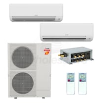 For over 50 years, Mitsubishi has remained at the forefront of the mini split industry thanks to their dedication to providing efficient, user-friendly comfort solutions. This is a two zone mini split system designed to give you individual control over the temperature in multiple rooms. An efficient MXZ-SM48NAMHZ2 outdoor condenser, built with advanced technology, is combined with quiet, wall mounted MSZ-GS indoor units and two wireless remote controllers for the perfect marriage of convenience and comfort. With multiple operating modes, multiple fan speeds, and multiple airflow directions, this is a system that fits the needs of nearly any home.