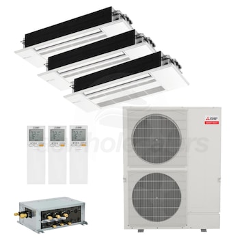 For over 50 years, Mitsubishi has remained at the forefront of the mini split industry thanks to their dedication to providing efficient, user-friendly comfort solutions. This is a three zone mini split system designed to give you individual control over the temperature in multiple rooms. An efficient MXZ-SM60NAM2 outdoor condenser, built with advanced technology, is combined with quiet ceiling cassette MLZ-KP indoor units and three wireless remote controllers for the perfect marriage of convenience and comfort. An MXZ multi-room system is an excellent choice for supplementing capacity to a current system, conditioning newly furnished spaces, or new additions and replacing a system within a home. With multiple operating modes and multiple fan speeds, this is a system that fits the needs of nearly any home.