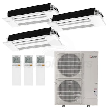 For over 50 years, Mitsubishi has remained at the forefront of the mini split industry thanks to their dedication to providing efficient, user-friendly comfort solutions. This is a three zone mini split system designed to give you individual control over the temperature in multiple rooms. An efficient MXZ-8C48NA outdoor condenser, built with advanced technology, is combined with quiet ceiling cassette MLZ-KP indoor units and three wireless remote controllers for the perfect marriage of convenience and comfort. With multiple operating modes and multiple fan speeds, this is a system that fits the needs of nearly any home.
