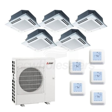 For over 50 years, Mitsubishi has remained at the forefront of the mini split industry thanks to their dedication to providing efficient, user-friendly comfort solutions. This is a five zone mini split system designed to give you individual control over the temperature in multiple rooms. An efficient MXZ-5C42NA4 outdoor condenser, built with advanced technology, is combined with low-profile SLZ-KF ceiling cassette indoor units and five wireless remote controllers for the perfect marriage of convenience and comfort. With multiple operating modes, multiple fan speeds, and multiple airflow directions, this is a system that fits the needs of nearly any home.