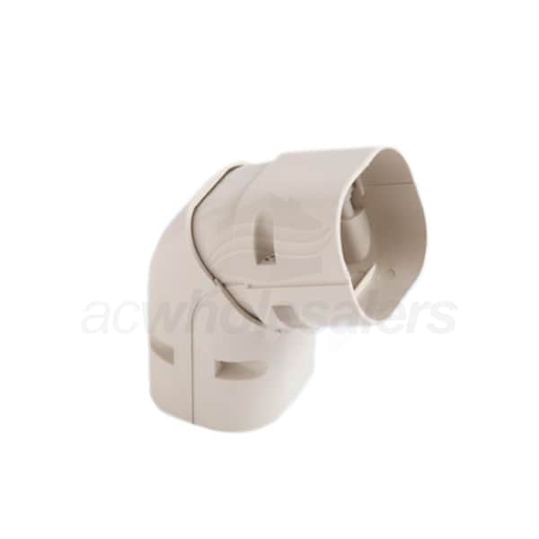 The NZ-140 universal elbow is a part of Mitsubishi's attractive, durable line set cover system, Line-Hide. Vertical universal elbows may be adjusted between 45 and 90 degrees and they are used in cornering and similiar applications to direct a line set towards or away from a wall. Size 140 Line-Hide systems feature 6" tubes for concealing refrigerant lines, drain tubes, and cables.