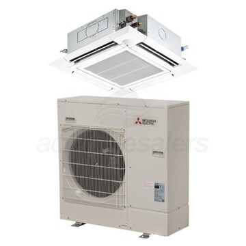 Overview for the Mitsubishi Ductless PUZ-HA30NHA5 PLA-A30EA7 PLP-40EAEU Ceiling Cassette Heat Pump Air Conditioning System