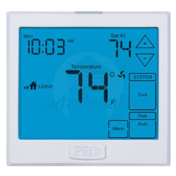 Pro1IAQ Model T905 - 1 Heat / 1 Cool Touchscreen Programmable Thermostat - A great looking touchscreen thermostat at a value price - choose from 7 day or 5+1+1 day program. Packed with features and designed to keep you comfortable.