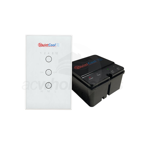 Control your whole house fan from anywhere in your home with the QuietCool Glass Wireless Smart Control. The easily installed wall mount switch can be removed and used anywhere in your home. Adjust the speed of your QuietCool fan and even set a countdown time for each fan.
