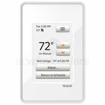 The DHERT102/BW is a touchscreen, programmable digital thermostat used to control a DITRA-HEAT system of heating cables (either 120 V or 240 V). Operated with a LCD touchscreen, the thermostat has a 5 mA GFCI and floor temperature sensor. The unit comes with a pre-set schedule which can be programmed to fit your needs. Up to 2 cables can be connected to the unit, supporting up to 15 amps total, but additional amps may be added with the addition of an optional power module.