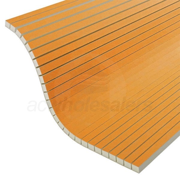 KERDI-BOARD-V has evenly spaced grooves cut lengthwise across its entire surface. This simplifies the building of substrates for curved surfaces.