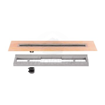 Schluter-KERDI-LINE is a low profile linear floor drain that can be installed adjacent to walls or at intermediate locations in showers, wet rooms, and other drainage applications. The drain is specifically designed for bonded waterproofing assemblies and as such can be installed in a floor with a single slope. This allows for the use of large scale, intricate tile design even on shower flooring. The KLVO60E90 is the channel body for the KERDI-LINE drain, and can fit a variety of KERDI-LINE grate kits (sold separately).