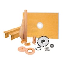 Looking to build your dream shower but don't know where to start? The KERDI-SHOWER-KIT is an all-inclusive shower construction package containing an integrated set of choice components from the Schluter shower family of products. The included KERDI-SHOWER-T shower tray and KERDI-BOARD-SC shower curb provide solid support and are ready to be tiled on straight out of the box. The KERDI waterproofing membrane contained in the kit has an extremely low vapor permeance, giving your shower prolonged resistance against both mold and corrosion.