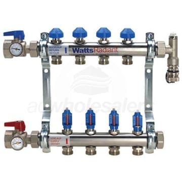 Watts Radiant stainless steel manifolds combine the benefits of high-grade materials with fantastic engineering to deliver a complete, effective manifold package. High-grade, heavy-walled stainless steel gives the manifold unrivaled strength against both corrosion and bursting, along with a professional appearance. Flowmeter valves allow for easy circuit isolation for repairs or maintenance, while a full array of brass and nickel fittings allows Watts Radiant stainless steel manifolds to fill nearly any role imaginable.