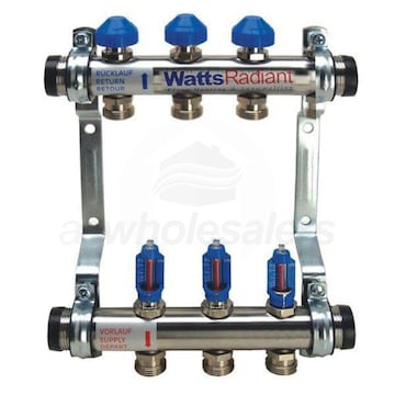 Watts Radiant stainless steel manifolds combine the benefits of high-grade materials with fantastic engineering to deliver a complete, effective manifold package. High-grade, heavy-walled stainless steel gives the manifold unrivaled strength against both corrosion and bursting, along with a professional appearance. Flowmeter valves allow for easy circuit isolation for repairs or maintenance, while a full array of brass and nickel fittings allows Watts Radiant stainless steel manifolds to fill nearly any role imaginable.