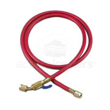 The Yellow Jacket 29660 is a red PLUS II™ hose with compact ball valve end. The hose features a full flow valve and uses a standard gaskets and valve opener. Recommended for R-410A.