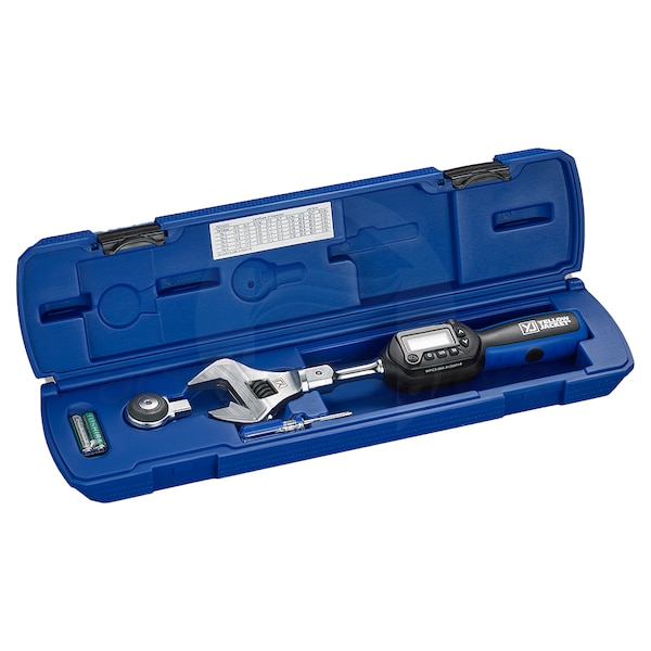 The Yellow Jacket Digital Adjustable Torque Wrench captures and displays torque measurement in real time, providing you extra control and accuracy. The digital torque wrench feature nine common preset torque values, which is displayed on the screen as the nut is tightened. For added assurance, indicator lights increase as the torque value is approached. The wrench also features an adjustable head, so you can leave your other wrenches at home.